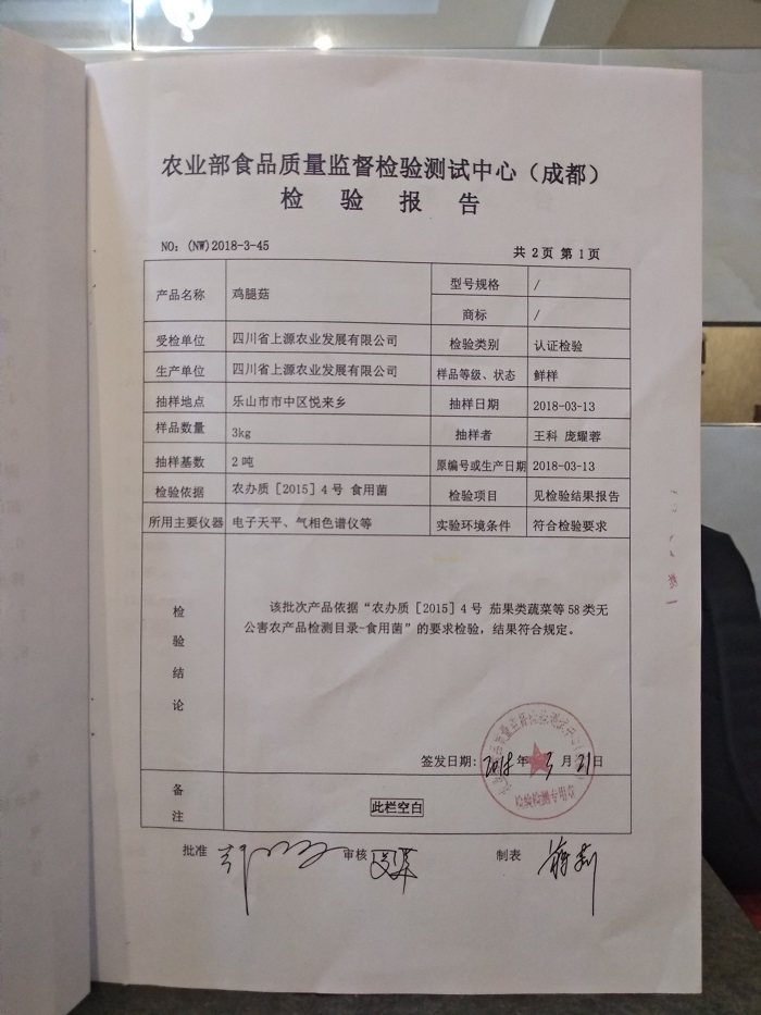 鸡腿菇质检报告2