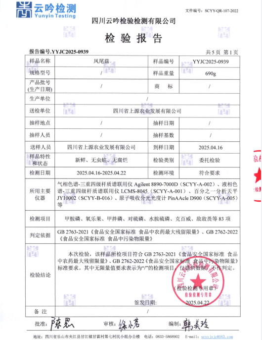 凤尾菇检测报告